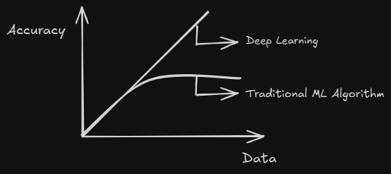 This is because traditional ML models can only capture simple patterns or linear relationships. They don’t scale well to complex patterns like image recognition, natural language understanding, or real-time decision-making.